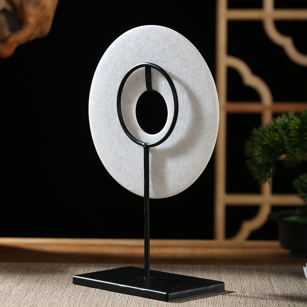 carved marble bi disc with iron stand2 colors can choose..